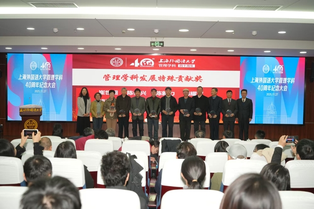 2025年11月27日,上海外国语大学管理学科创办40周年纪念大会在松江校区国际教育中心一楼报告厅隆重召开。这场承载着四十年耕耘记忆与未来发展期许的盛会,汇聚校领导、师生代表、退休教师、行业嘉宾及校友代表,共同回望学科发展征程,见证管理教育高质量发展的丰硕成果。