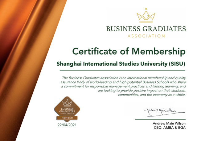 近日,上外国际工商管理学院收到商学院毕业生协会(Business Graduates Association,BGA) 的函件,正式确认为其会员。这是学院自2020年获得AMBA国际认证后,在国际交流合作和国际认证领域的又一重要进展,也是学院“十四五”期间以“质量”为核心、进一步推进国际化发展和治理水平,全面提升国际化人才培养的重要举措。