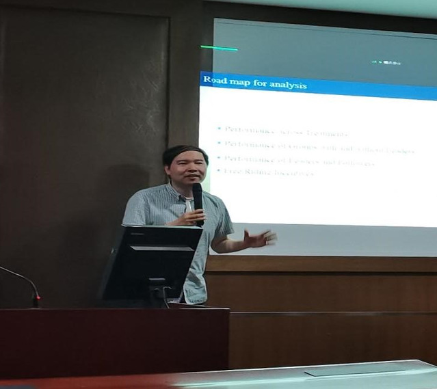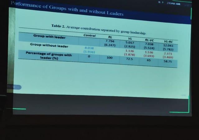 在本次讲座中,郑捷教授首先为我们点明了本次讲座的关键词——合作与领导,引导大家思考领导是如何产生的,怎样的领导产生机制是最有效率的。接下来,教授便从三个层面逐层深入进行分析。第一层面是机制的比较。在本次讲座所展示的研究中,共设计了四种领导产生机制:随机选择(VL),自愿选择(RL),自愿报名-随机遴选(RL-VC),随机遴选-自愿担任(VL-RC)。郑教授就这四种机制分别介绍它们的特点与实验结果。第二层面是有无领导人的比较。在有领导人的情况中,随机遴选-自愿担任的机制下产生的领导者贡献率最高,并且会带动团队的其他成员创造贡献。但这种机制下出现领导者的机率比较低。而在同一领导者选拔机制下对有无领导者进行比较,发现有领导者的贡献率普遍大于无领导者。在采用领导者选拔机制与不采用领导者机制的比较中,发现领导者选拔机制并没有很好地提升贡献水平。第三层面是个体决策方面的比较。在有领导者的小组中,领导者(纯利他性的)的贡献比追随者的贡献都要大。且领导者的贡献越多,追随者的贡献也越多,这种相关性是正向的。因此在一个团队中很可能出现追随者搭领导者便车的现象。当一个团队有多位领导者时,也可能出现领导者之间搭便车的现象。最后郑捷教授的总结为我们带来了启发:很多时候并不能只从机制的角度去评价一个事情,我们更希望去发挥这个机制的有效性。