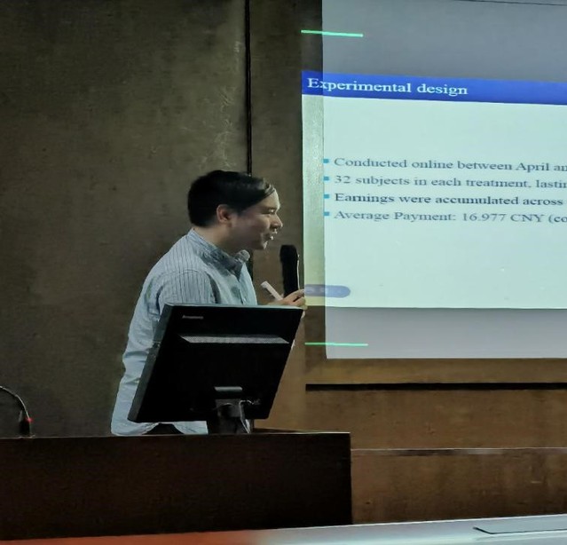 5月11日,应我院邀请,清华大学经济管理学院经济系副教授郑捷在松江校区2220教室为我院师生分享了题为“Promoting Cooperation by Leading: Leader-Selection Mechanism Matters in Public Goods Games”的精彩讲座,杨晓兰教授主持本次会议。学院部分教师、研究生及本科生参加了此次讲座。