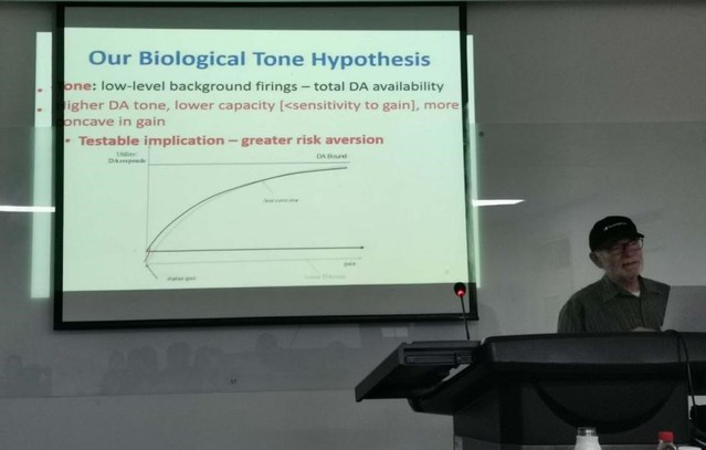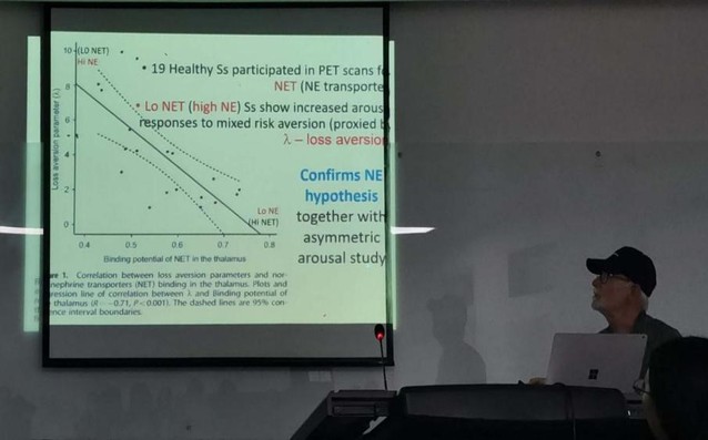 紧接着,教授进一步讨论了如何测试其模型对风险态度影响的预测——提高咖啡因/尼古丁可以降低对偶偶增益(损失)的厌恶(耐受性),增加对长射增益(损失)的偏好(厌恶)。最后,教授对讲座内容做了简单的总结。其团队在决策中关注的LC-NE模型,包括神经元层面上相位模式和主压模式之间的主动相互作用,提供了支撑非模型的认知错误的神经生物学解释。