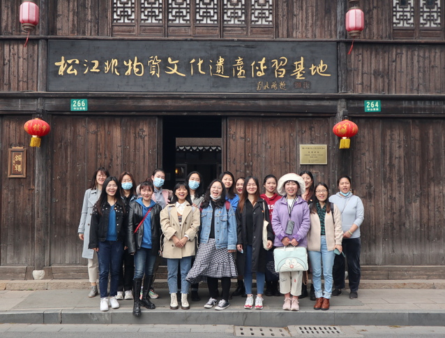 松江一带曾是全国最大的棉纺织业中心,有“松郡棉布,衣被天下”之称。松江布艺展示馆内展示了部分近、现代松江棉布和织造工具的图文实物资料,例如松江棉布、药斑布、织布机等。通过工作人员的深入讲解,使大家感受到了松江普通百姓的生活智慧,体验松江布艺,也感受到本土文化的温暖和内涵。