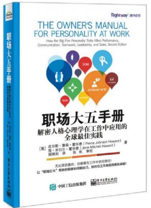 1、《职场大五手册:解密人格心理学在工作中应用的全球最佳实践》 作者:(美)Pierce Johnson Howard(皮尔斯·詹森·霍华德)、Jane Mitchell Howard(简·米切尔·霍华德) 顾朝阳 译 电子工业出版社2016年9月出版