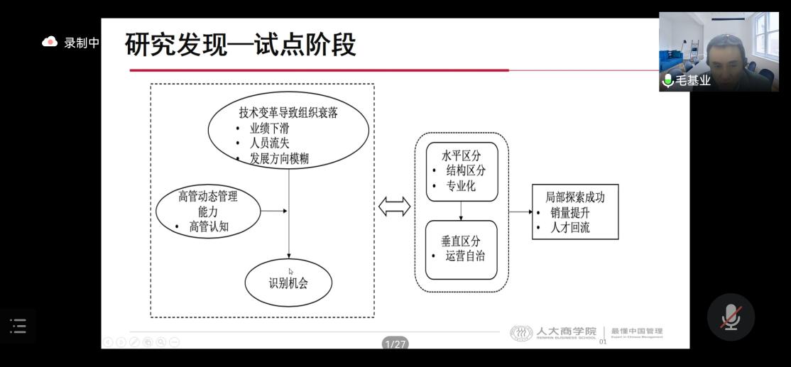 1月7日,上海外国语大学国际工商管理学院“管院讲坛系列学术讲座”第78期在线上顺利召开。应我院邀请,中国人民大学商学院二级教授毛基业为我院师生分享了题为“数字化转型与组织重构案例研究”的精彩讲座,潘煜教授主持了此次会议。学院部分教授、教师、博士生、研究生及本科生参加了此次讲座。
