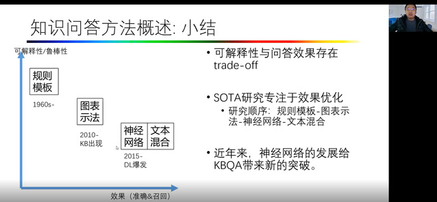 接着崔老师解答了为什么要使用知识图谱:一是KBQA可以为问题的语义理解提供丰富的背景知识。二是借由知识图谱,可以实现一些初步的推理能力,问答系统可以回答知识图谱没有直接表示的事实。因此,知识图谱是一种高质量、高效的问答方式。