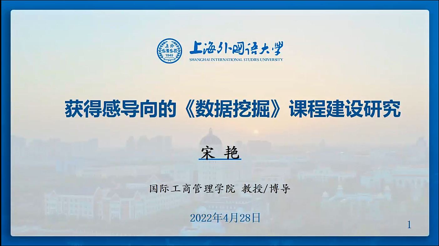 2022年4月28日下午,由我院信息管理与信息系统专业教研室牵头的教育部信管专业虚拟教研室顺利举办“‘获得感’导向的文科高校《数据挖掘》课程建设研究”课程示范课活动。本次课程示范课活动是教育部信管专业虚拟教研室教研系列活动,由上海外国语大学国际工商管理学院信息管理与决策科学系与人工智能数据工程中心承办,线上通过虚拟教研室钉钉平台进行。活动主讲人为我校人工智能数据工程中心副主任宋艳教授,主持人为我院副院长、教育部信管专业虚拟教研室主任马宝君教授,信管专业虚拟教研室成员单位及其他高校的90余位老师在线上参加了此次教学研讨活动,讨论交流气氛热烈。