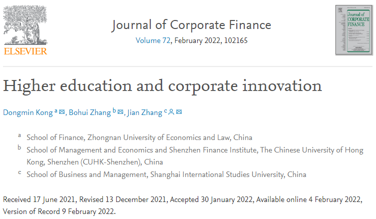论文题目|  Higher education and corporate innovation