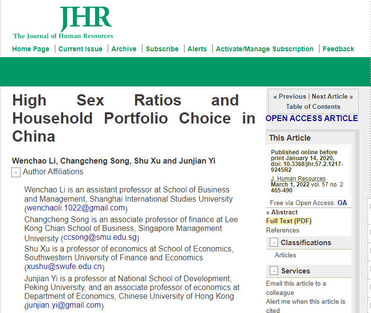 论文题目|  High Sex Ratios and Household Portfolio Choice in China