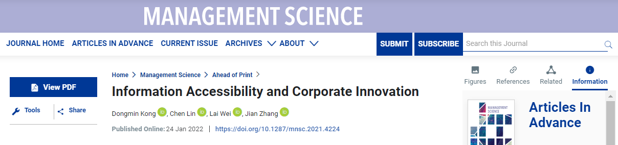 论文题目|  Information accessibility and corporate innovation