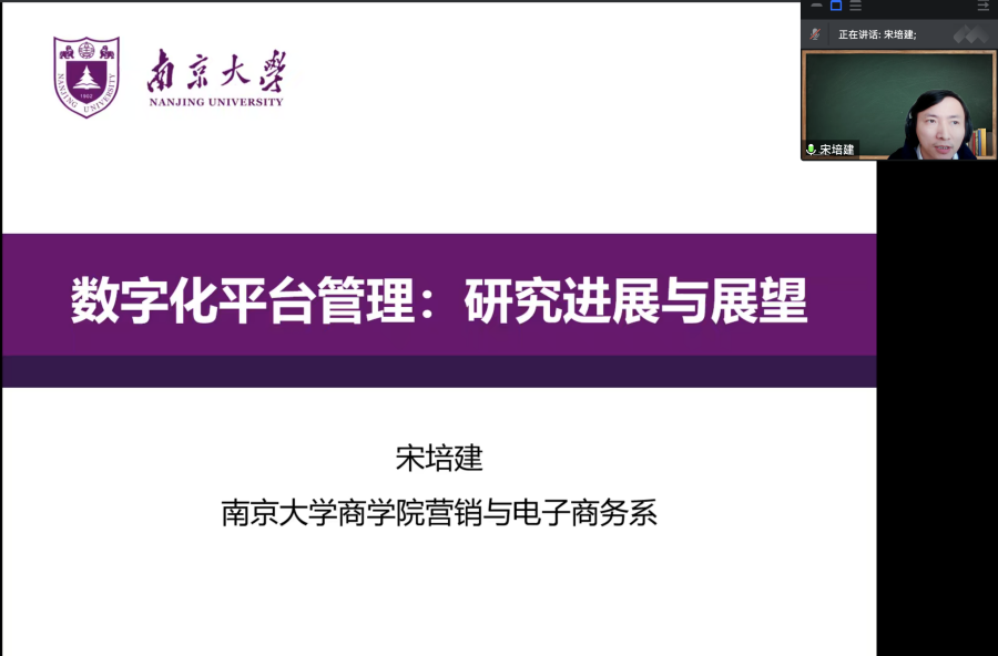 11月9日,上海外国语大学国际工商管理学院“研究生学术训练营”第2讲在线上召开。应我院邀请,南京大学商学院宋培建教授为我院师生分享了题为“数字化平台管理:研究进展与展望”的精彩讲座,张明月副教授主持了此次会议。我院师生以及多名业内学者参加了此次讲座,线上参会人数突破300人次。