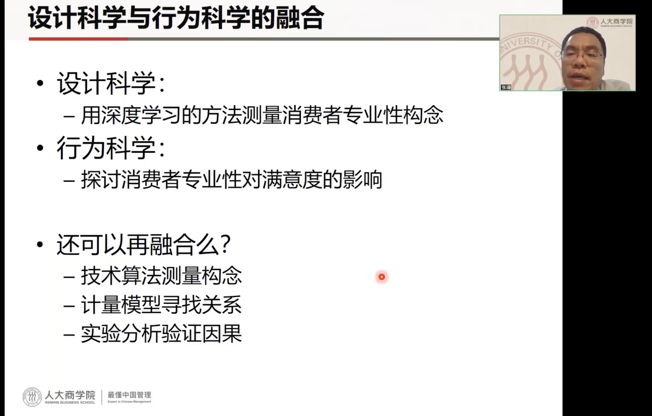 在汇报过程中,张院长重点阐述了如何将信息管理领域设计科学与行为科学的范式相结合,并且提出,可以从技术算法测量构念、计量模型寻找关系、实验分析验证因果等方面进行融合。在讲座的最后,同学们踊跃提问,张院长一一耐心详细地作答,研讨氛围热烈,本次工作坊的开展为管院信息管理和行为科学方向的研究提供了长足的帮助。