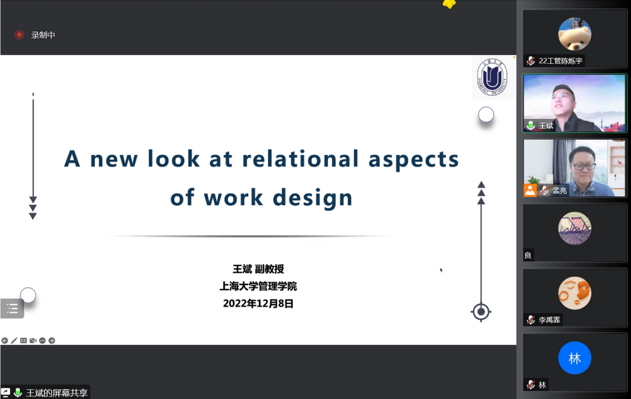12月8日,上海外国语大学国际工商管理学院“管院讲坛系列学术讲座”第88期于线上顺利举办。应我院邀请,上海大学管理学院副教授王斌为我院做了题为“A new look at relational aspects of work design”的讲座,由孟亮副教授主持了本次会议,学院多名教师、博士生、研究生及本科生参加了本次讲座。