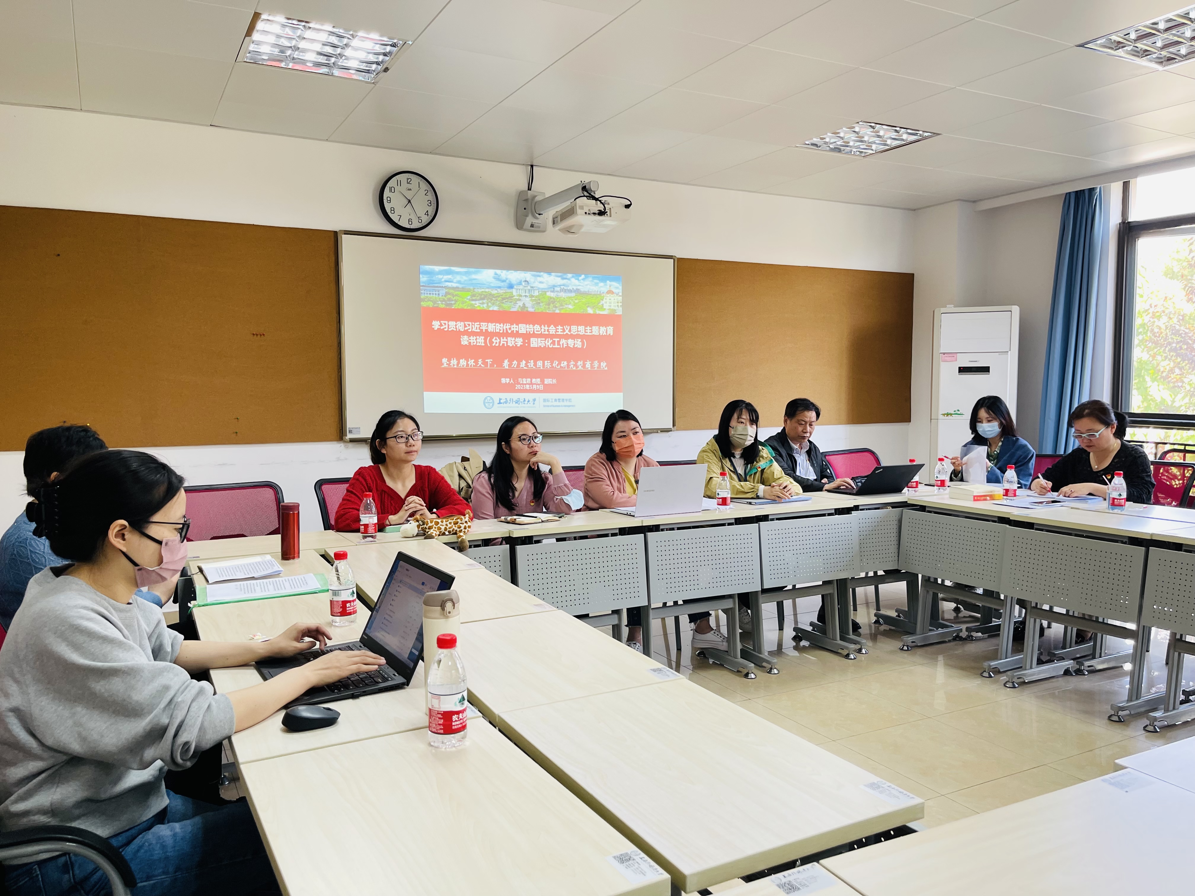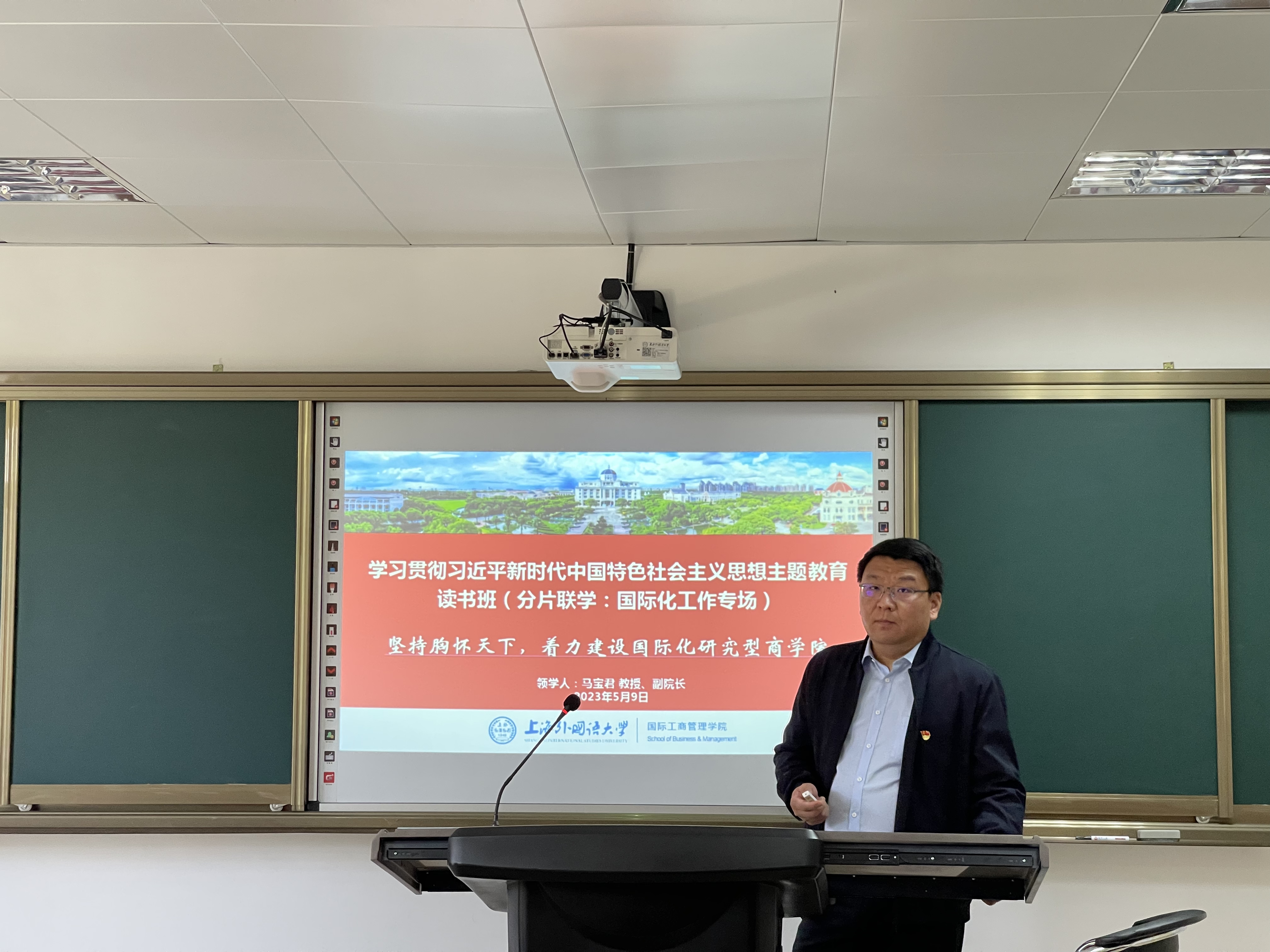 5月10日下午,上海外国语大学国际工商管理学院学习贯彻习近平新时代中国特色社会主义思想主题教育读书班领学领讲活动在二教楼246教室举行,学院副院长马宝君领学了《坚持胸怀天下,着力建设国际化研究型商学院》专题,学院党委书记徐永,国际交流办公室、国际认证办公室、教师代表参加学习。