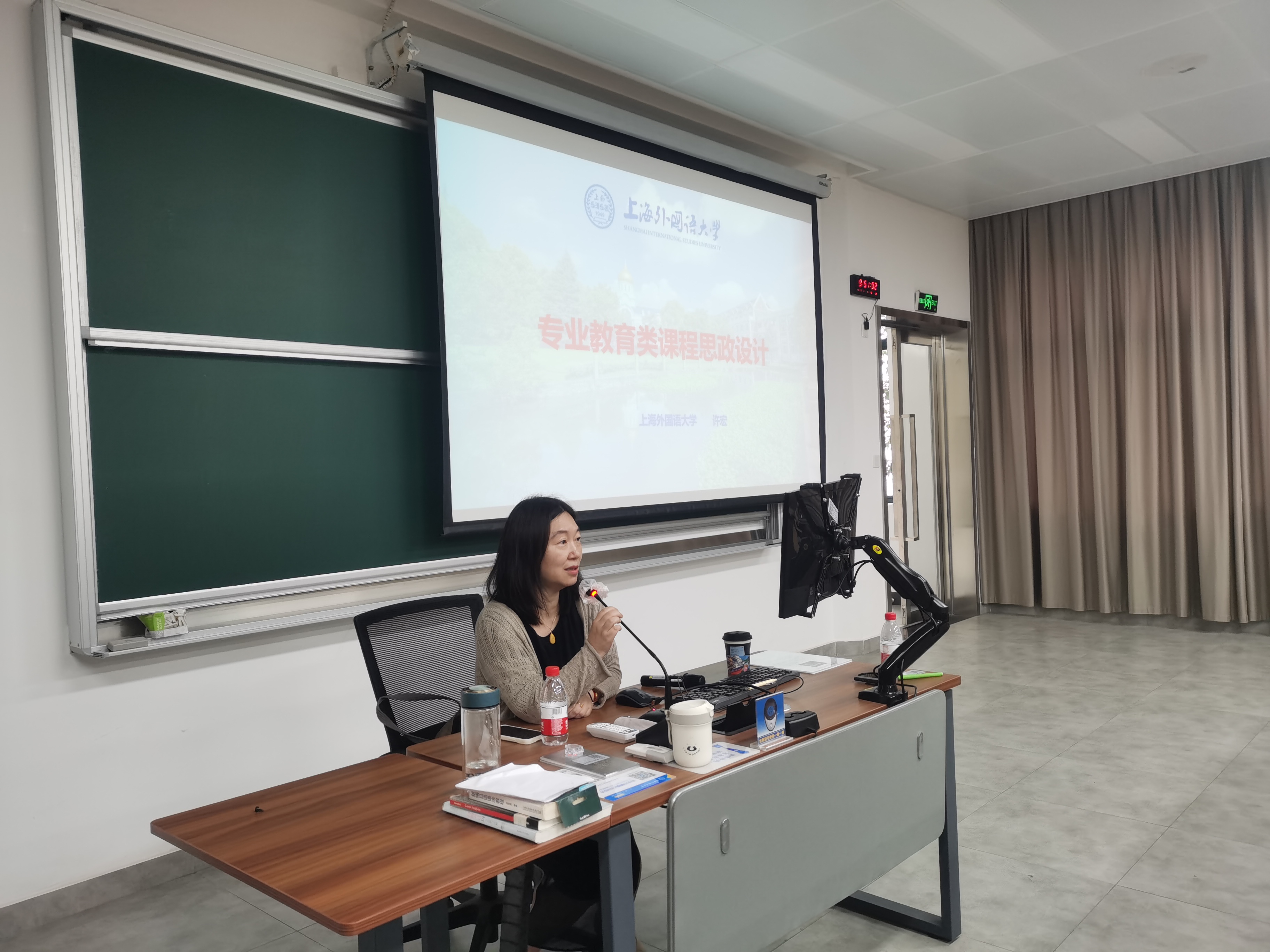 接下来,许宏教授为大家作了题为“专业教育类课程思政设计”的精彩而充实的讲座。她首先和大家分享了自2010年至今中央的主要会议和文件精神,介绍了课程思政的由来及内涵,强调了课程思政在为党育人、为国育才中的重要性;然后,许教授结合教育部2020年颁布的《高等学校课程思政建设指导纲要》,系统介绍了课程思政落实相关的架构、过程、要素、路径等内容,指出应把做人做事的基本道理、把社会主义核心价值观的要求、把实现民族复兴的理想和责任融入各类课程教学之中,使各类课程与思想政治理论课同向而行,行程协同效应;最后,许宏教授利用自己参与的阅读课和俄语语法课等课程中落实思政要求的方法为案例,具体介绍开展课程思政的方法,包括结合学校定位和中国学生发展核心素养来挖掘课程思政元素,引用科技前沿、当今时事、人物传记、历史事件等作为融入策略,采用诊断性评价、过程性评价、总结性评价等多种评价方法来检测课程思政开展的成效等。