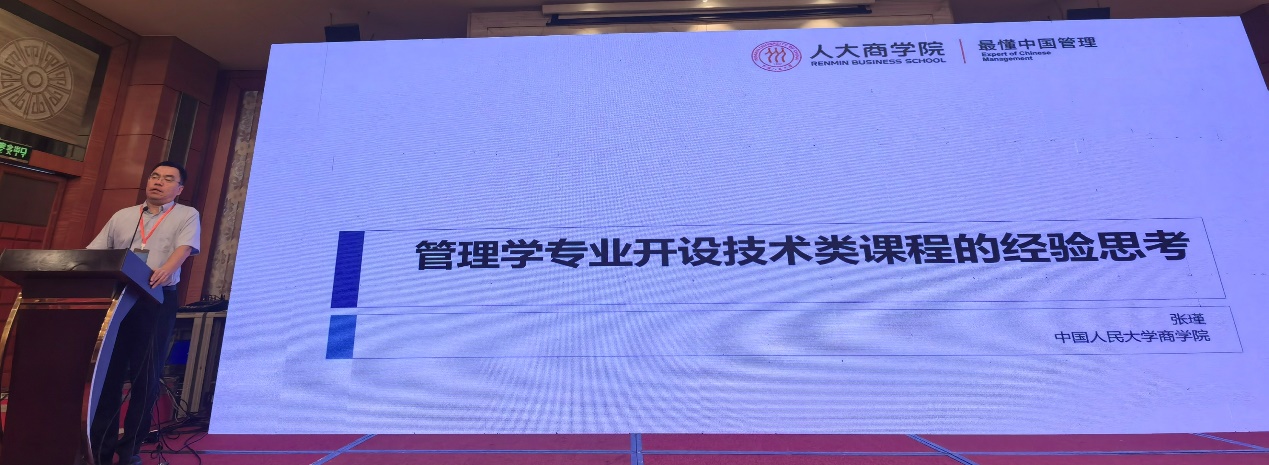 17日上午的第一场分享是由中国人民大学张瑾教授带来的“管理学专业开设技术类课程的经验思考”报告。张瑾老师首先给出信息系统的定位和范式,指出它既不是单纯的技术问题,也不是孤立的管理问题,而是二者的交互融合;接着从设计科学和行为科学视角详细介绍了信息系统领域的科研情况,并从教学特点及教学与科研的结合阐述了信息管理与信息系统专业技术类课程开设的必要性;最后,张教授在分析了技术类课程的学情基础上,以自己讲授的商业数据分析课程中开发和使用的实际教学案例为例,展示了管理学专业探索开设技术类课程的思路和做法。