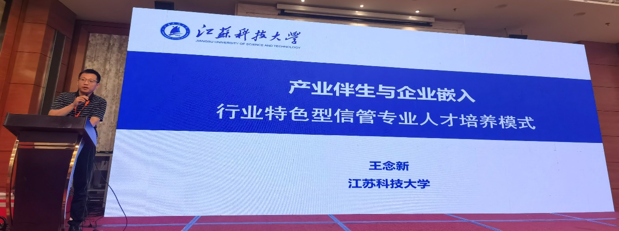 接着江苏科技大学王念新教授做了题为“产业伴生与企业嵌入:行业特色型信管专业人才培养模式”的报告分享。王念新教授首先从以江苏科技大学为代表的行业特色型高校的信管专业人才培养遇到的问题出发,详细介绍了其依托船海制造业特征的四个方面解决办法,即(1)构建全域知识的课程体系:围绕船海产业信息化需求重构;(2)开发全真环境的教学资源:从真实项目中提炼开发;(3)全程体验的实践能力培养:以学生能力培养为中心;(4)打造一支高水平教学团队。在分享了取得的产教协同育人机制创新、教学资源建设路径创新、实践能力培养体系创新以及一系列积极显著实施效果的基础上,王教授最后还就如何持续培养满足船舶制造业需求的信管专业人才提出了三点现实挑战。