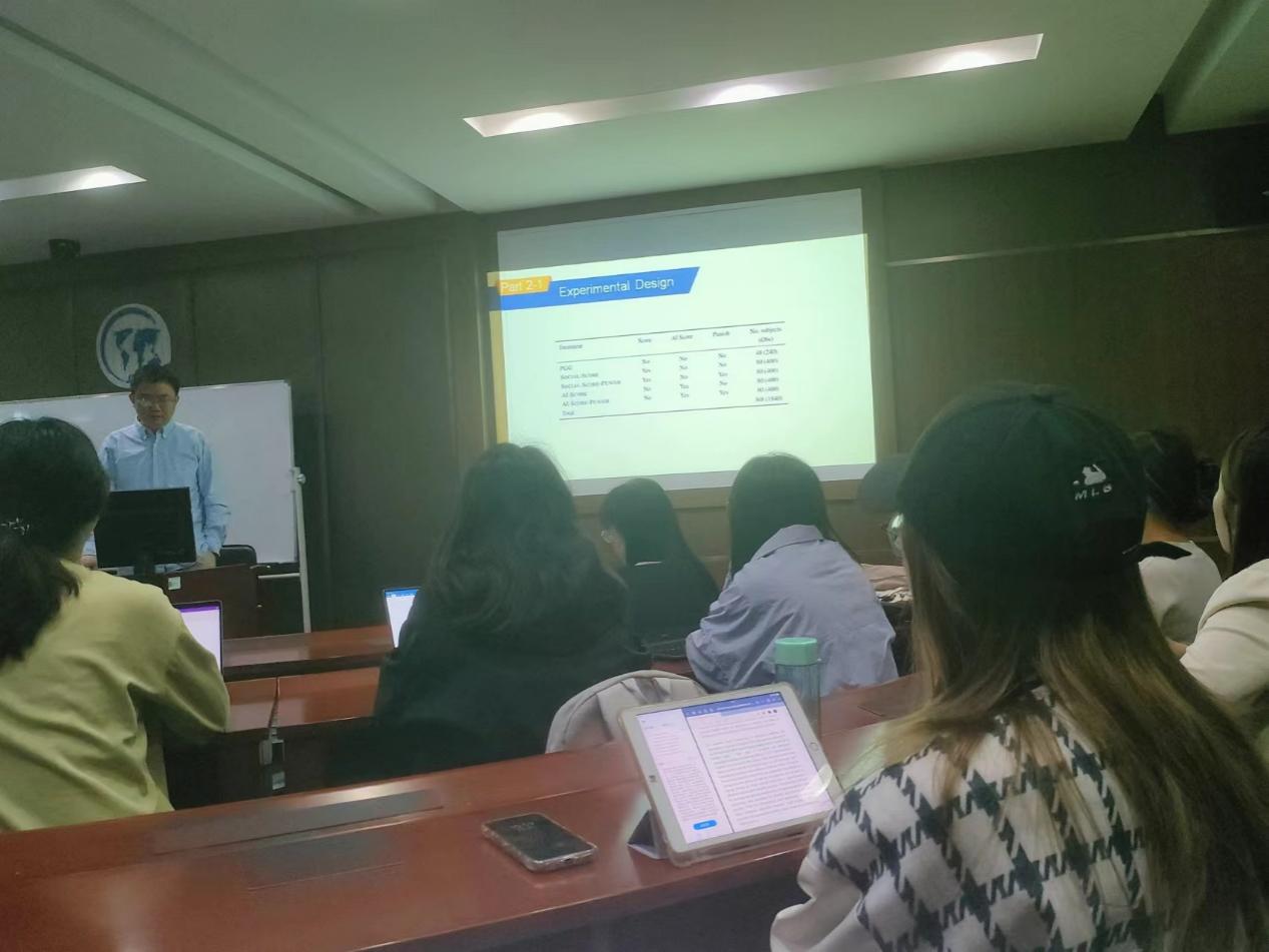 最后,魏老师根据此研究结果做出分析总结并对AI管理未来研究进行了推测:AI-Assistant treatments在接受度上要优于AI treatments,但在结果上可能逐渐类似于AI treatments。同学们在讲座进行中也积极踊跃地提出有关AI的问题,针对同学们的提问,魏老师给予详细解答。本次讲座视野广阔,内容丰富,对学院广大师生开阔研究视野,提升研究能力颇有帮助。