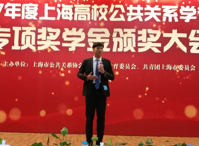 现场演讲比赛是今年评奖新增加的重要环节。复旦大学、华东师范大学、上海外国语大学、东华大学、上海师范大学、上海第二工业大学的12名选手,围绕“新时代:公关活力与梦想”主题展开角逐。最终,我校公共关系学本科专业大二学生孙峻梓凭借充满激情的表现打动资深评委,获得演讲比赛最高分,并代表上海高校2017年度98名公关专项奖学金获得者作即兴发言。
