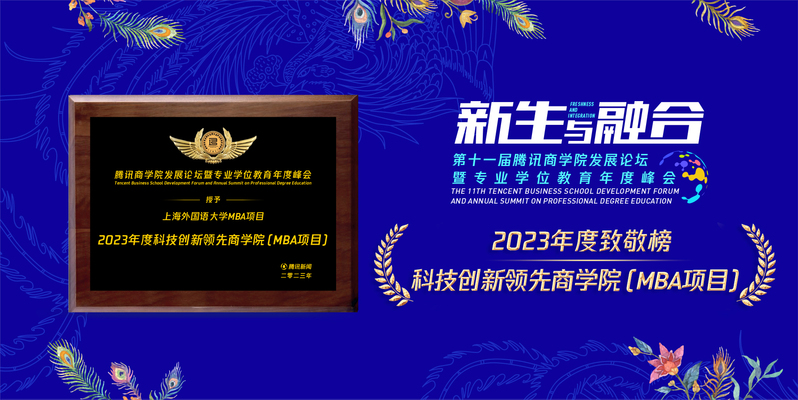 在年度奖项评选环节,上海外国语大学国际工商管理学院MBA项目凭借其卓越的科技创新实力和前瞻性的商业教育理念,荣获“2023年度科技创新领先商学院(MBA项目)”荣誉,这一荣誉是对上外国际工商管理学院及其MBA项目在科技创新和商业教育方面的双重认可。