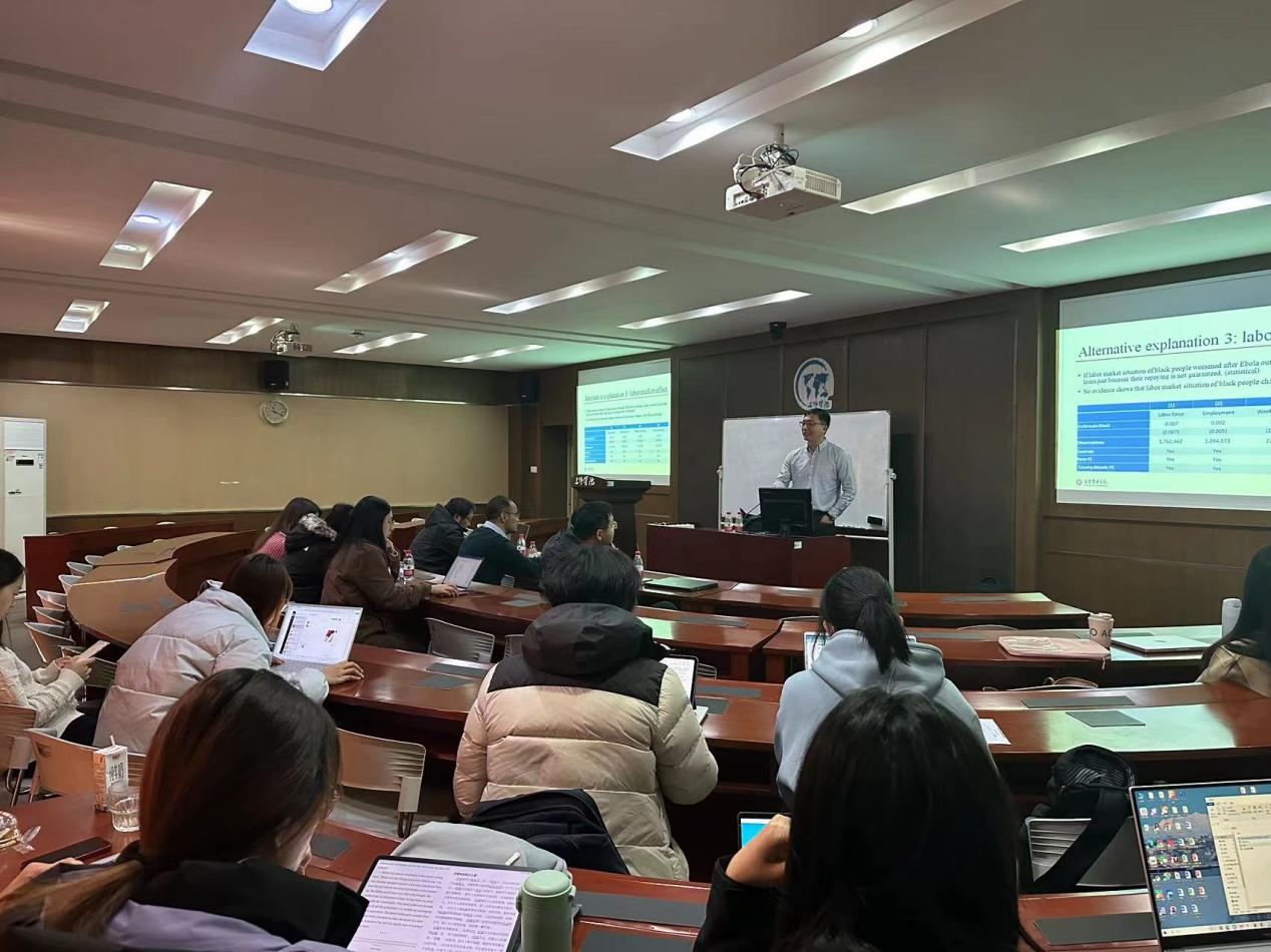 讲座的结尾部分,卢老师介绍了论文的几点结论:埃博拉疫情增加了黑人申请者的拒绝率;情绪的变化显著影响到了贷款市场的差异;基于人工智能的贷款可能会减轻情绪驱动的偏见,并增加无担保情况下的金融包容性;过去的大型流行性疾病的经验有助于纠正或减少此类型的种族偏见。最后,刘春波老师再次对卢老师的到来表示感谢,至此讲座结束。