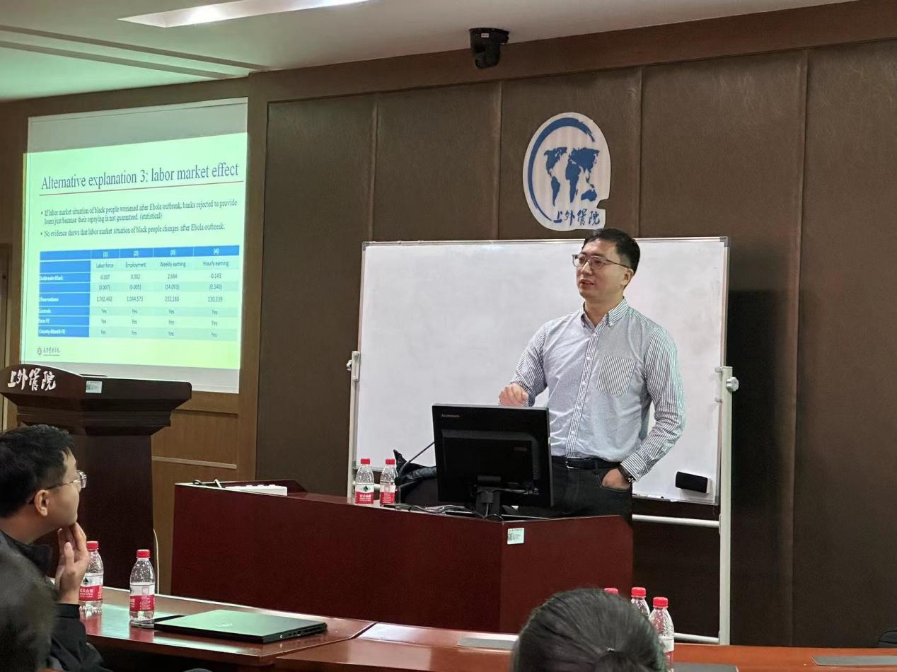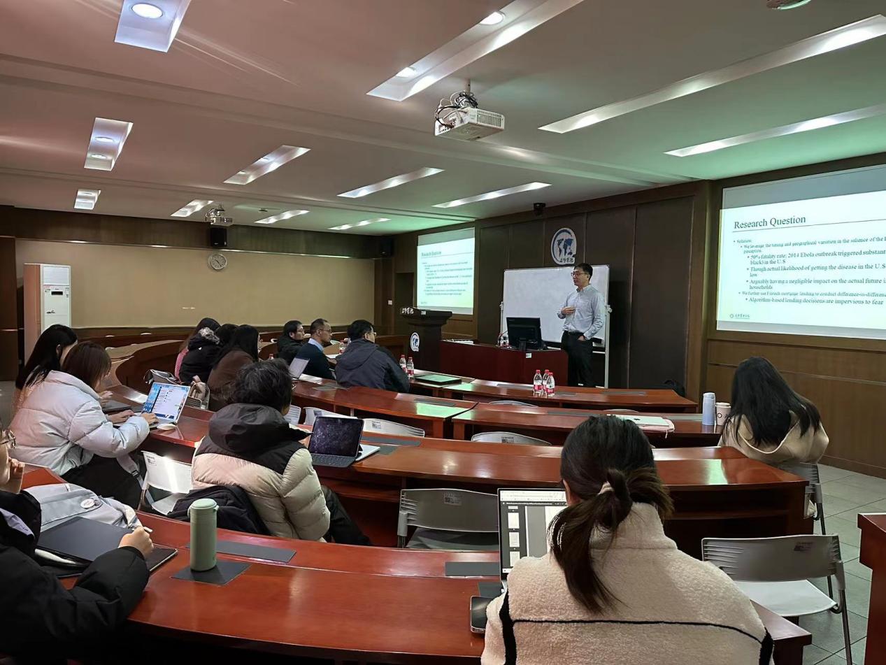 12月1日,上海外国语大学国际工商管理学院有幸邀请到卢瑞昌副教授作为“管院讲坛”第112期嘉宾,他向我们介绍了研究主题:“Deadly Disease, Fear, and Ostracism in the Credit Market”以及他产出的论文成果。本次讲座吸引了我院二十余名教师、硕博研究生参与。刘春波副教授作为主持人在讲座开始前对嘉宾表示欢迎。