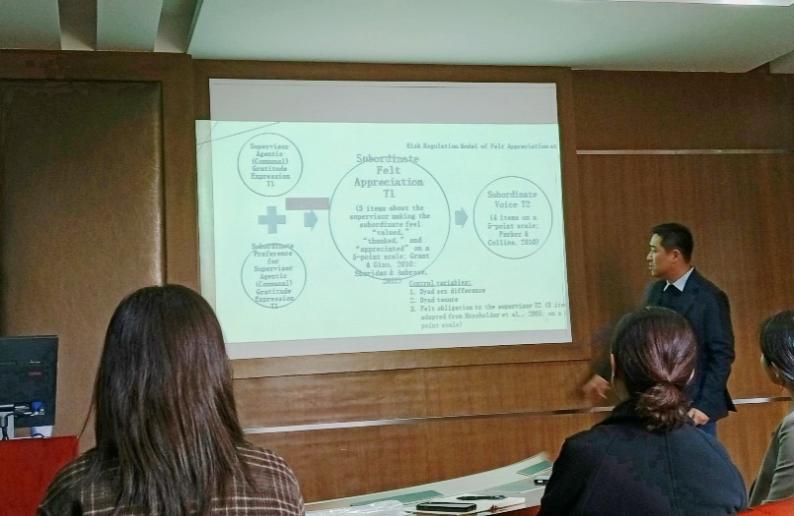 3月26日,我院举办“管院讲坛”系列学术讲座第118期,应我院邀请,科罗拉多大学Boulder分校利兹商学院副教授孔德骏做了题为“Nuanced insights on supervisors’ gratitude expression and subordinates’ felt appreciation”的学术讲座。此次讲座由特聘研究员胡碧芸主持,吸引30余名我院教师、硕博研究生、本科生以及外校教师与博士研究生参加。