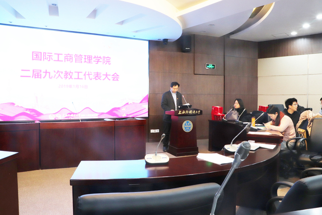 为进一步贯彻校党委和校工会关于推进校务公开、加强民主管理的指示精神,增强教职工参与民主管理、民主决策的积极性,2019年1月16日下午,国际工商管理学院二届九次教职工代表大会在上海外国语大学虹口校区第二报告厅隆重召开,学院全体教职员工参加了本次会议。会议由党总支书记徐永老师主持。