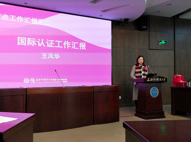 国际工商管理学院副院长王风华老师作国际认证工作报告,总结了过去一年中我院在提升国际化影响力方面所做出的努力和取得的成果,并强调了接下来一至两年拿下认证AMBA和EQUES的重要性、紧迫性。此外,王老师还阐述了学院关于5年内拿下AACSB认证的长远计划,并号召全院全体教师积极参与,为我院国际化建设贡献力量。