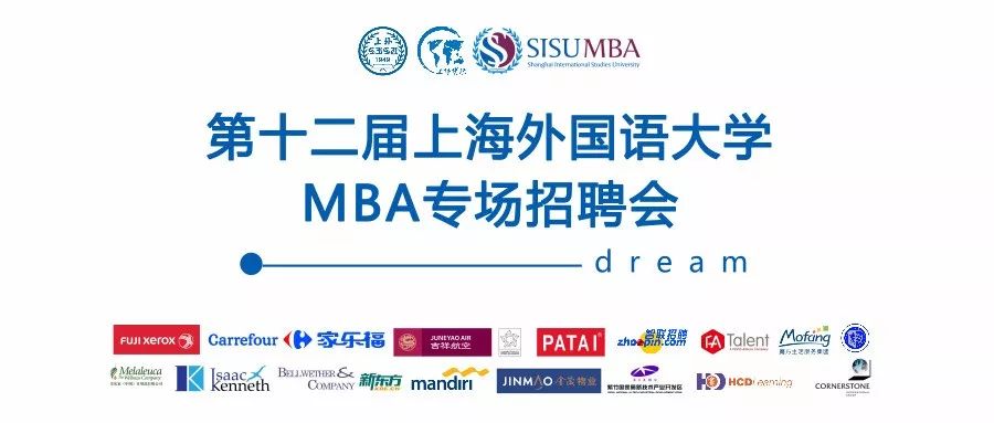 Welcome to the 12th MBA Job Fair hosted by the MBA Center of Shanghai International Studies University (SISU). We will have 22 well-known potential employers among State-owned, International and Private-owned companies that mainly come from the Finance, Consulting, FMCG, Fashion and luxury, Real Estate, Manufactory, Education, Human resource service, and Science industries. They will bring more than 150 job vacancies and internships, which need over 400 headcounts to be filled in.