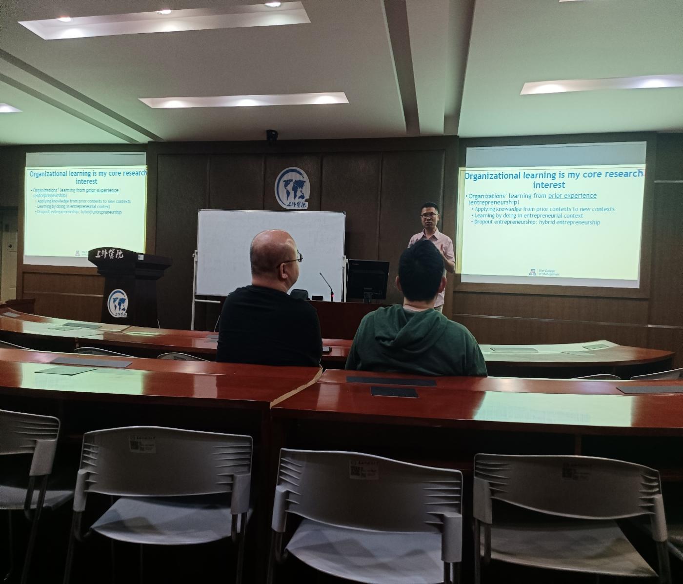 5月31日,我院举行了“管院讲坛”系列学术活动第122期,邀请亚利桑那大学Eller管理学院曹智助理教授做题为“Reconceptualizing hybrid entrepreneurship”的学术讲座。我院相关研究方向专任教师及部分硕博生到场聆听并学习交流。