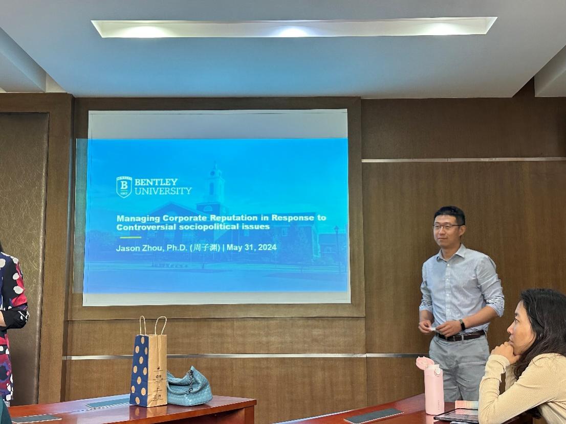 5月31日,我院举行了“管院讲坛”系列学术活动第123期,邀请本特利大学周子渊助理教授做题为“Managing corporate reputation in response to controversial sociopolitical issues”的学术讲座。我院相关研究方向专任教师及部分硕博生到场聆听并学习交流。
