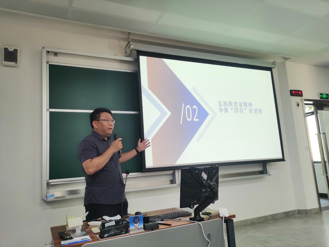为进一步提升教师队伍的整体素质,深化师德师风建设,国际工商管理学院于7月3日在松江校区一教楼154启动了“院长讲师德”专项行动,第一讲以“弘扬教育家精神,争做‘四有’好老师”为主题,由主持工作副院长马宝君亲自主讲,学院全体教职工参加。