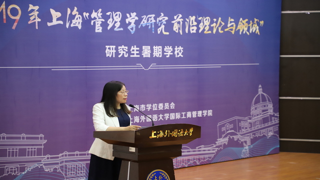 7月8日下午,由上海市学位委员会主办,上海外国语大学国际工商管理学院承办的2019年上海“管理学研究前沿理论与领域”研究生暑期学校在上海外国语大学图文西厅举行。上海外国语大学研究生院院长赵蓉晖教授,国际工商管理学院常务副院长王风华教授,教学副院长杨晓兰教授,美国天普大学任荣荣教授以及国际工商管理学院多位老师和全体学生共180余人参加开学典礼。开学典礼由杨晓兰教授主持。
