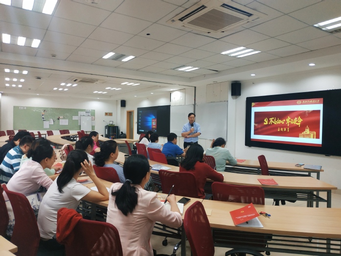 坚定如磐初心、勇担历史使命,10月11日下午国际工商管理学院党总支在虹口校区1号楼举行“不忘初心、牢记使命”主题教育活动。学院党总支书记徐永老师为党员老师们做主题教育专题党课,基于习总书记在开展主题教育会议上的讲话和学校工作安排,详细介绍主题教育的意义、内容和目标,要求各支部党员在支委会的安排下认真学习,查找差距,并切实提升自己的表现。徐书记叮嘱老师们切实完成主题教育任务,鼓励老师们开展理论学习与实践学习,坚守共产主义远大理想和中国特色社会主义共同理想。