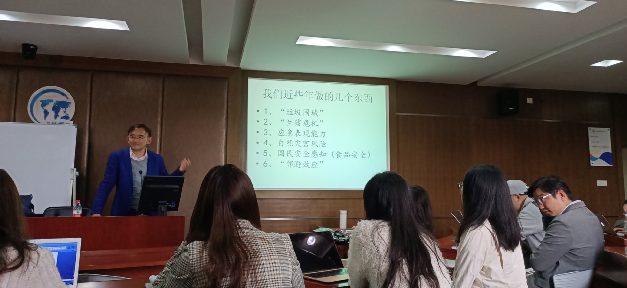 在讲座中,陈安教授先对应急管理的属性进行讲解,通过对一些例子的分析,介绍了应急管理中的技术应用以及技术背后的灾害文化。此外,陈教授从机理和机制两个大方面对应急管理进行了体系化建设,提出“4L-5S”的机理分析方法,对管理体制的目标组成和关系设计进行讲解。最后,陈教授介绍了管理效应,从研究原因、研究步骤和公共危机管理中的典型效应几个方面展开讲述,并给出了“完整研究之四段论”的研究方法。通过陈教授专业而不失幽默的介绍,我院师生在对应急管理有较深刻认识的同时,也收获了相关研究和分析问题的方法。